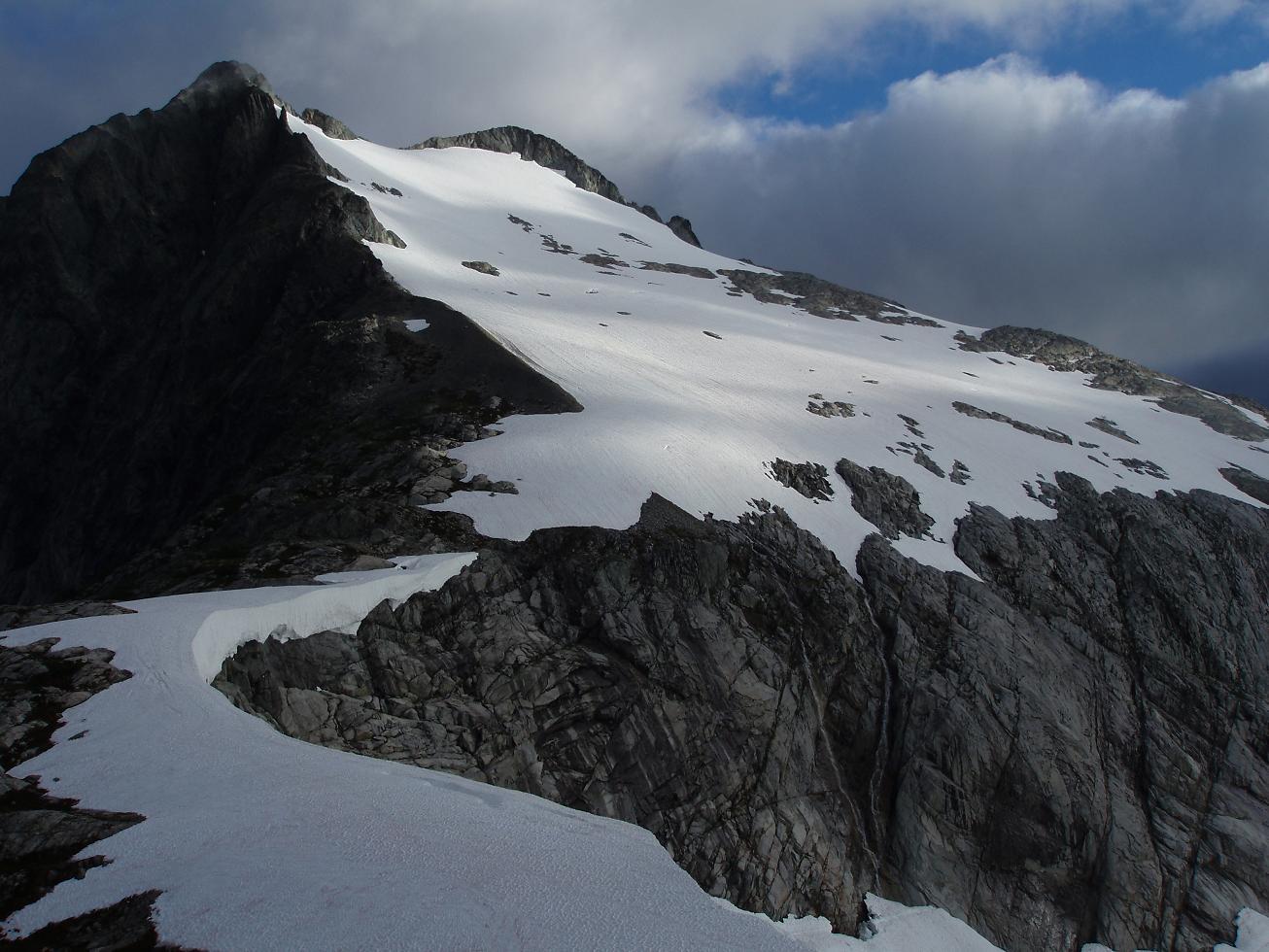 Ascending the SW ridge 30 feet below the summit of Tunnel Vision Peak