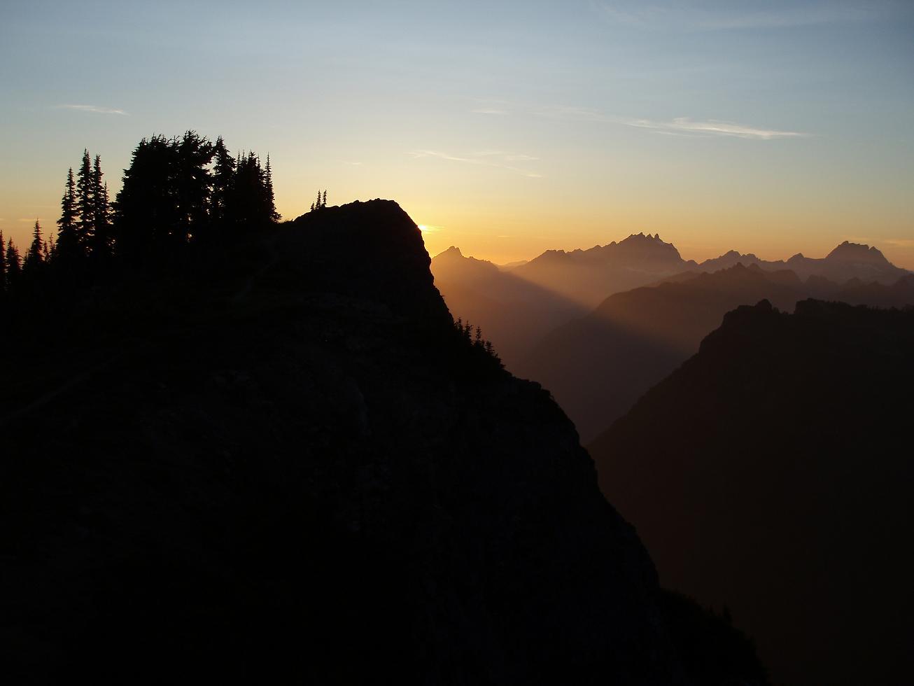 Sunrise behind Chikamin Peak from Alaska Mountain