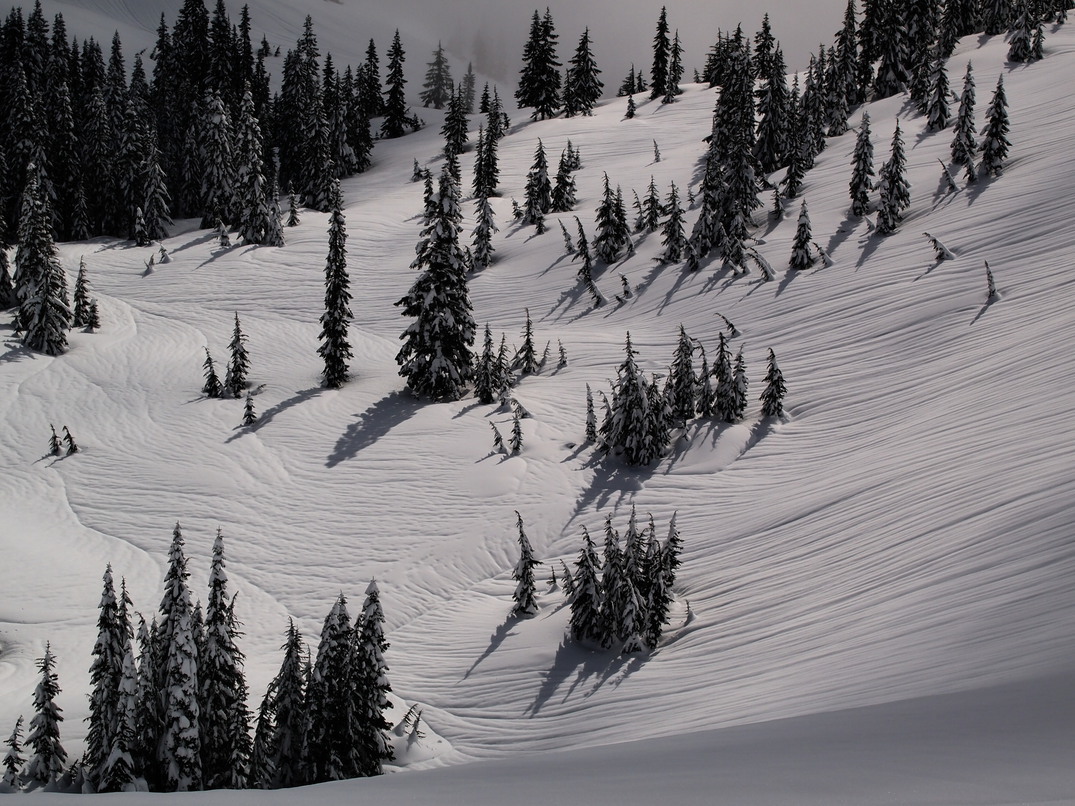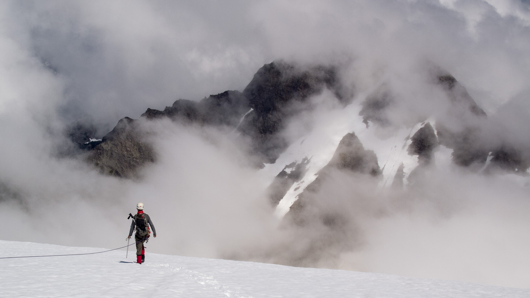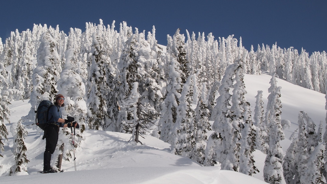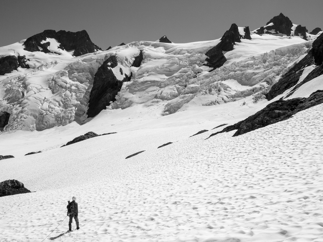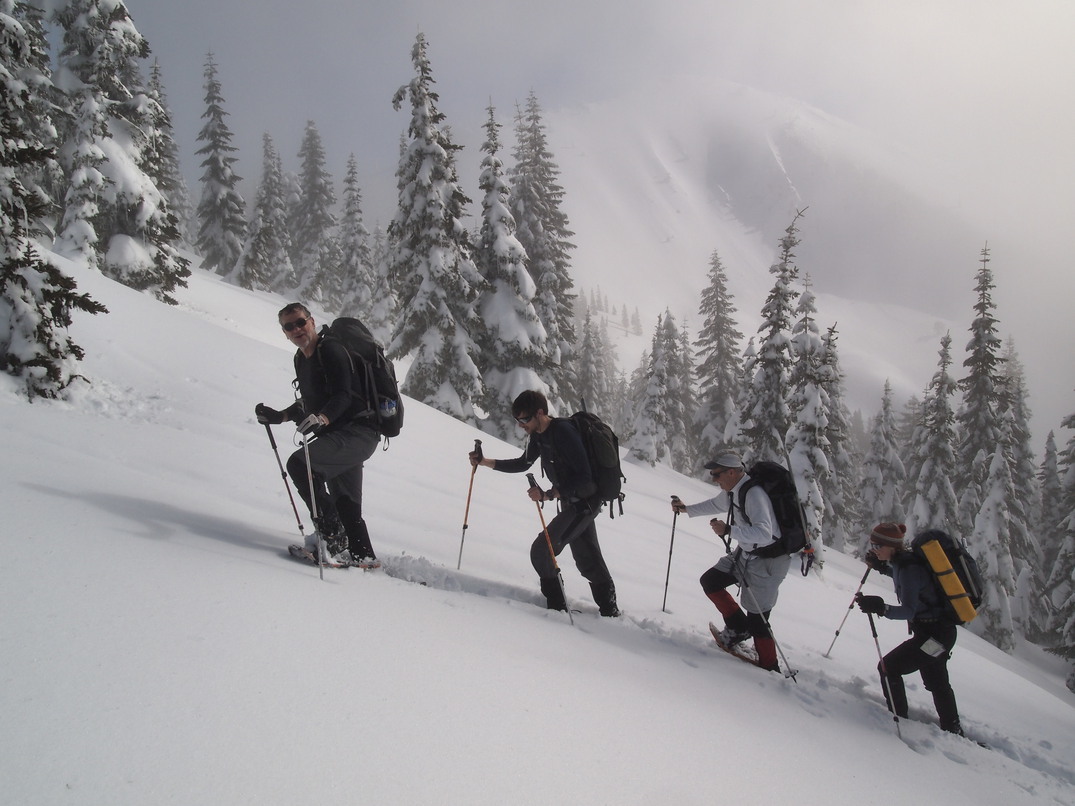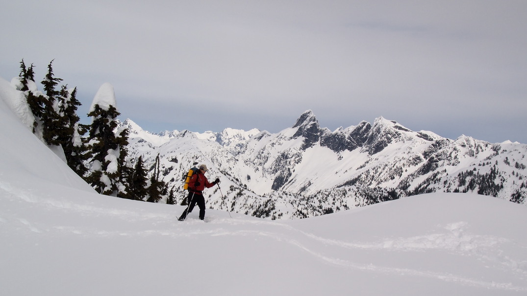 Skiing up point 5,560' with Lichtenberg Mountain in the background