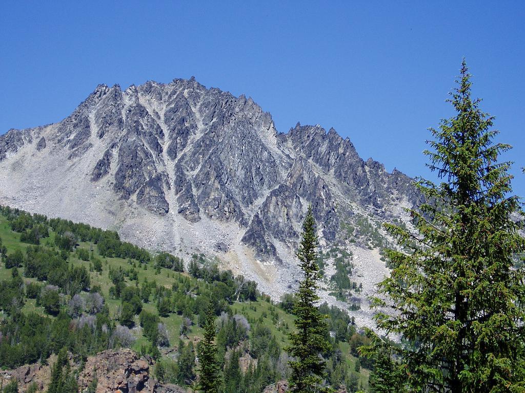 Looking back at Cashmere Mountain and some pinnacles on its west ridge