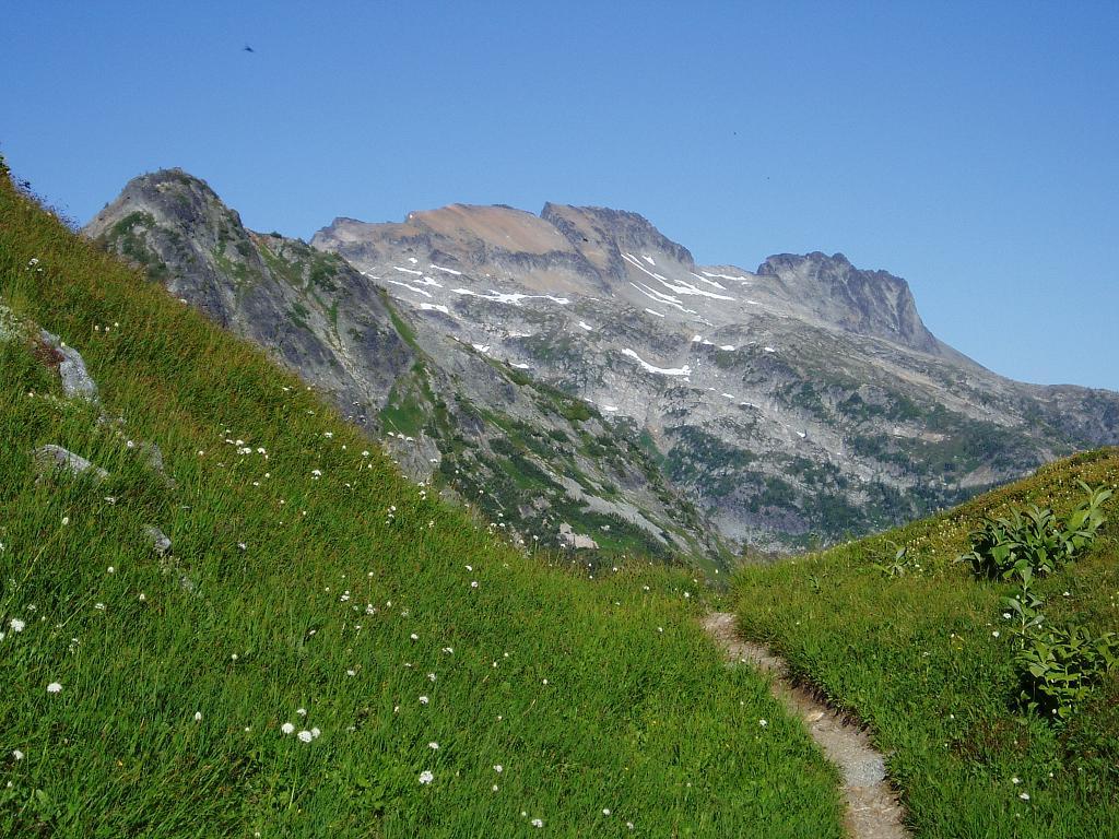 Mount Baker, Eldorado Peak, and Forbidden Peak from summit of Sahale Peak