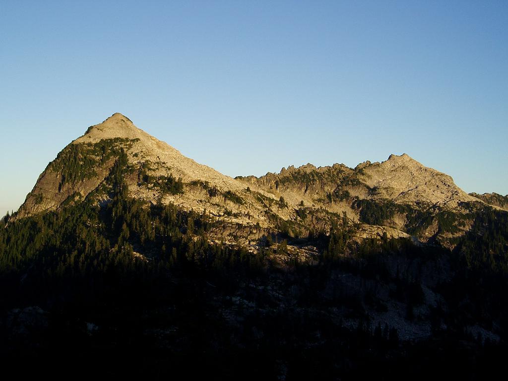 Tourmaline Peak and Camp Robber Peak from our camp on a sub-ridge east of Chetwoot Lake