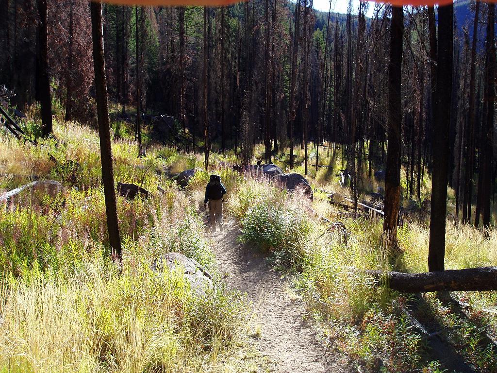 Trail through a burned section of the forest