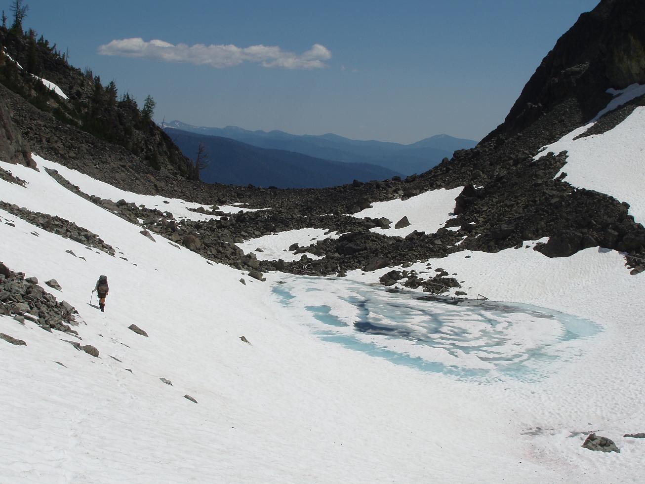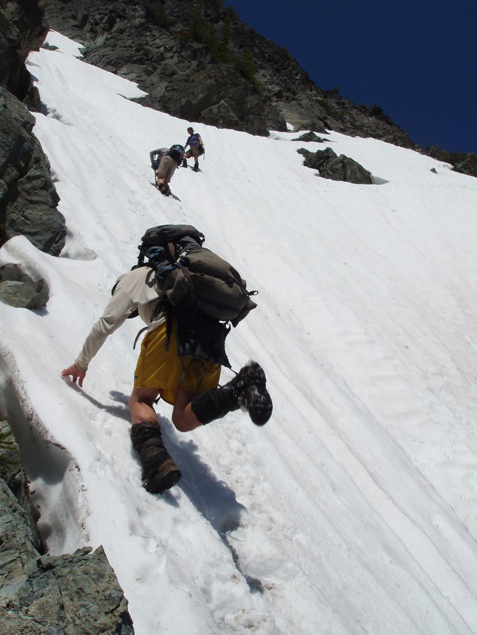 Descending crux snowfield