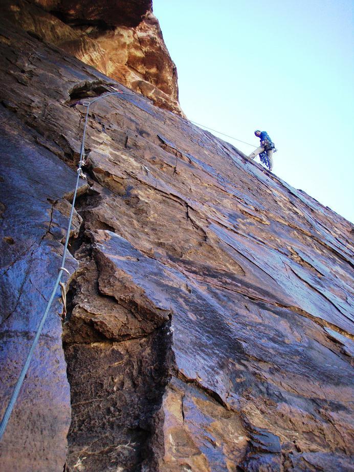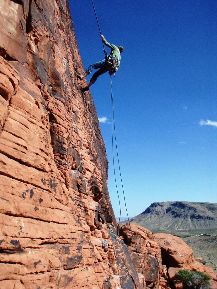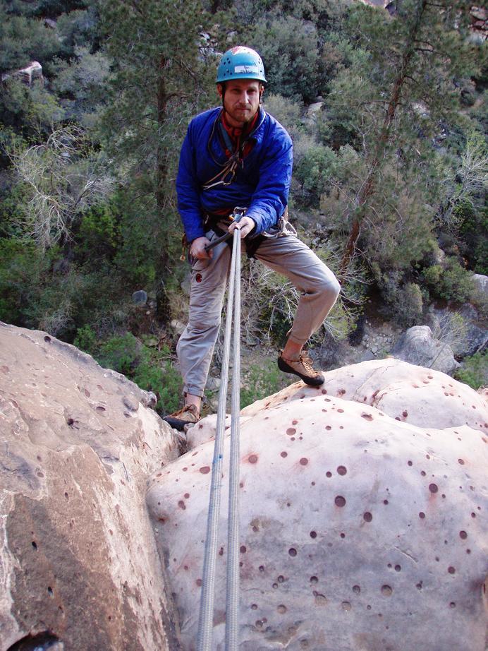 Rapping from the first belay on Dark Shadows