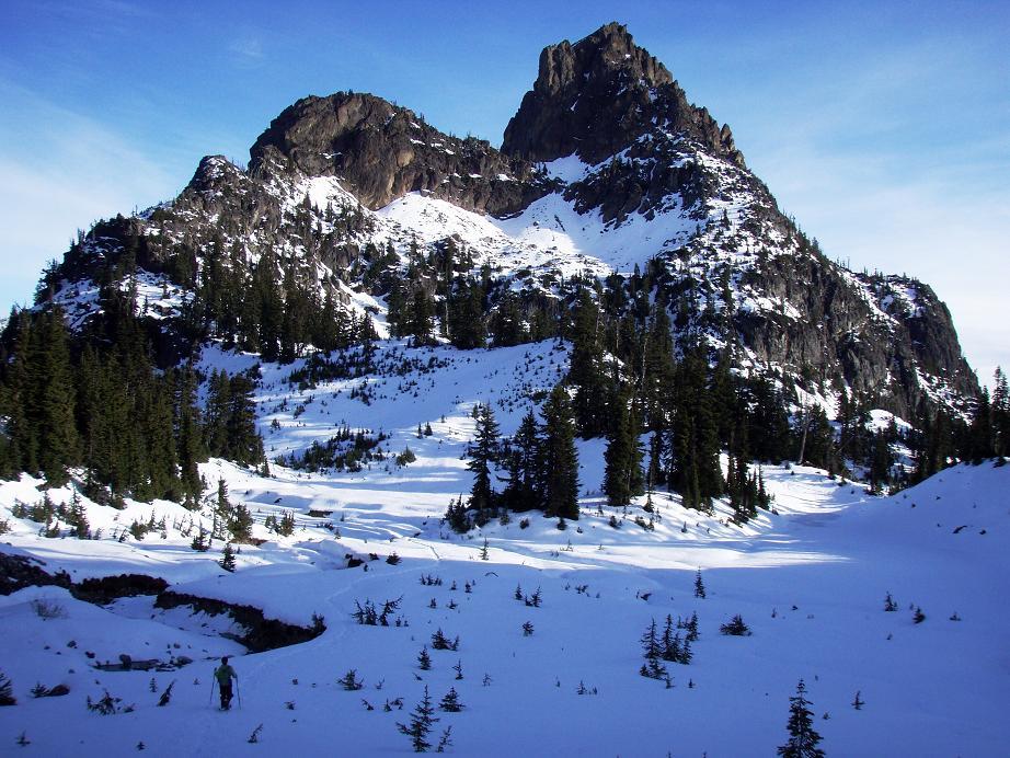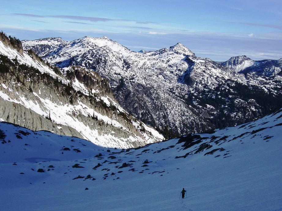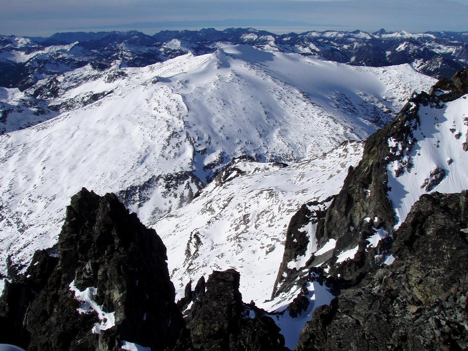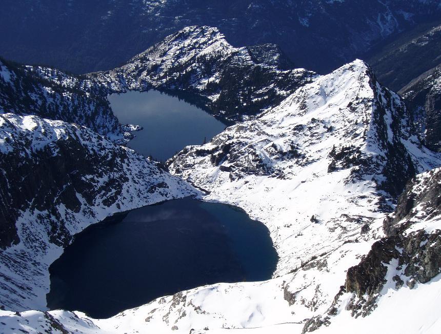 Ares Peak, Venus Lake, and Spade Lake from the east peak of Mount Daniel