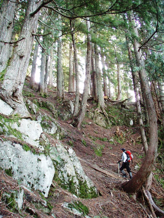 Eventually the ridge became narrow and rocky, requiring increasingly