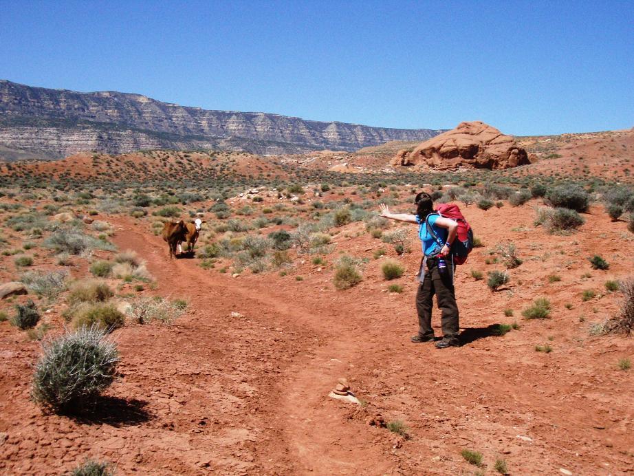 Warning off the cows near the Hurricane Wash trail head