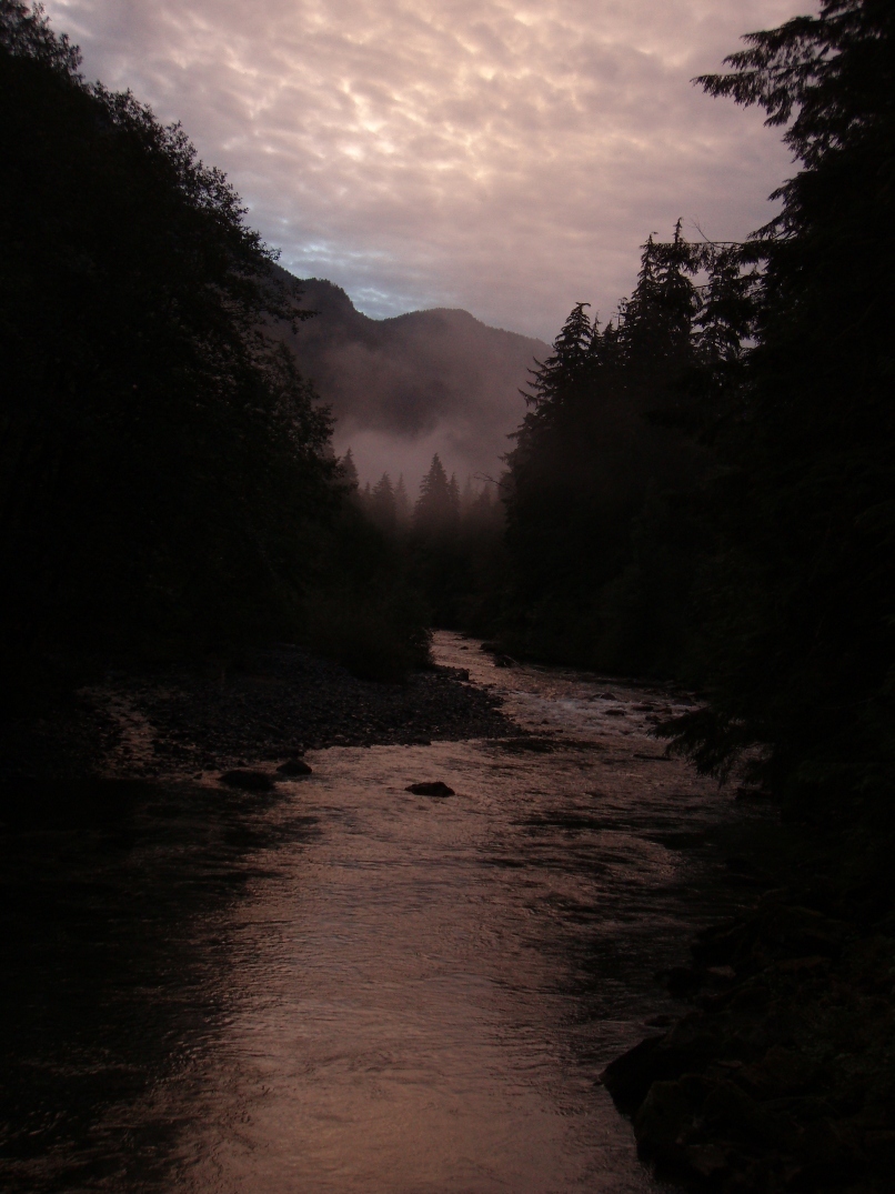 I had hoped to hitch a ride up the Middle Fork Road, but it was dark