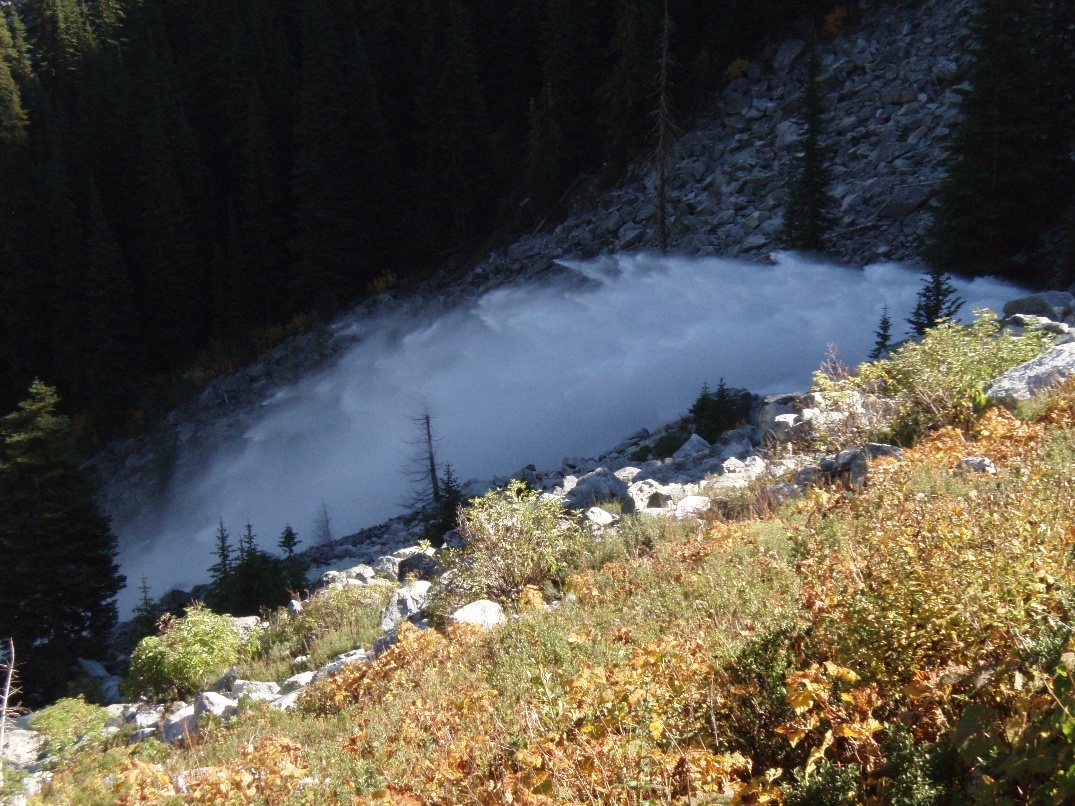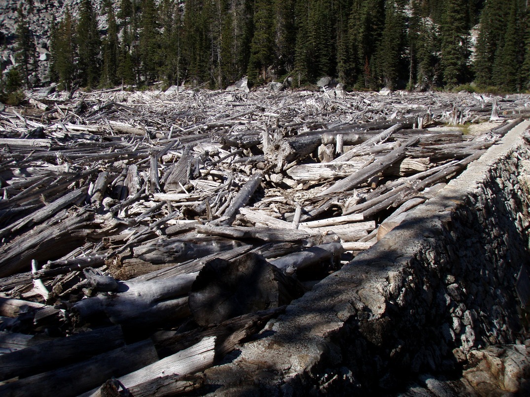 The world's biggest log jam between the two Snow Lakes