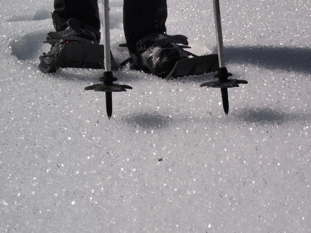 The snow was covered in icy marbles