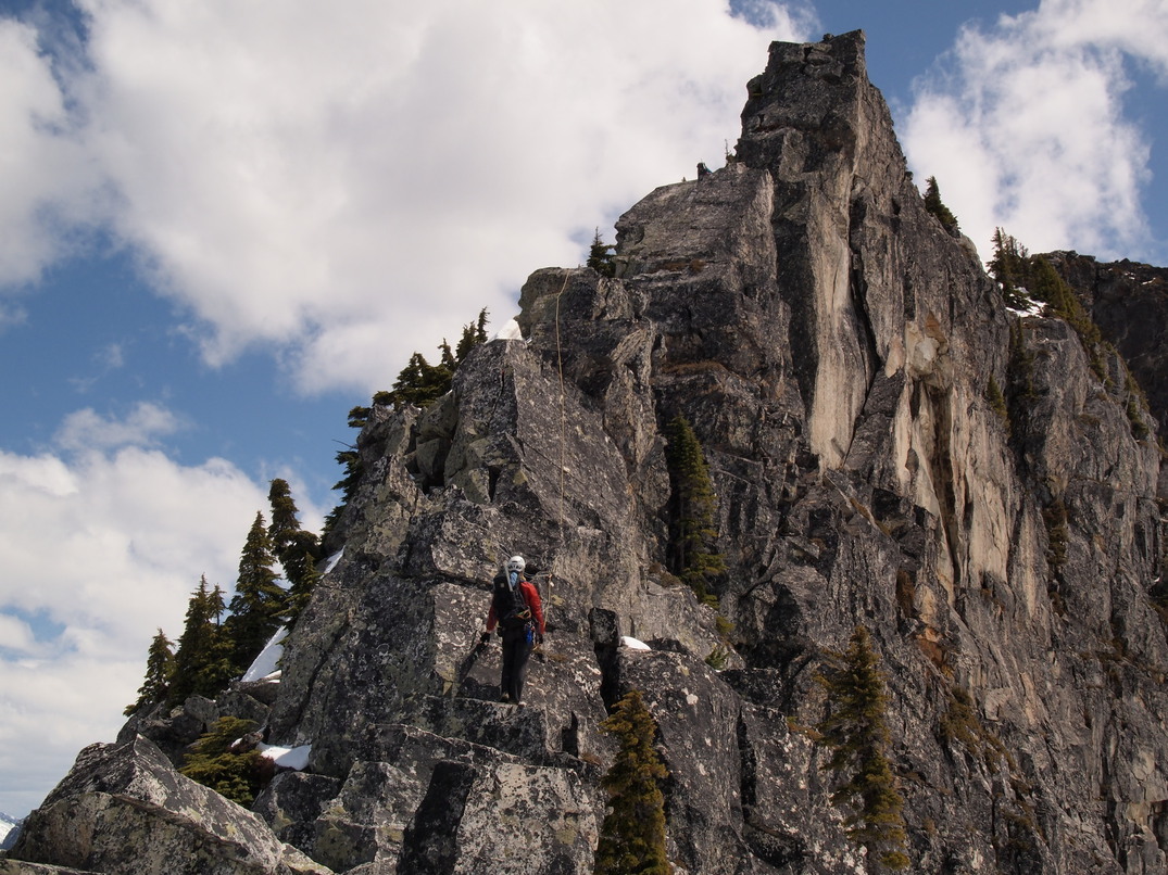 We ran into another rope team, Ken and Monique, ahead of us on Lundin Peak's west ridge.