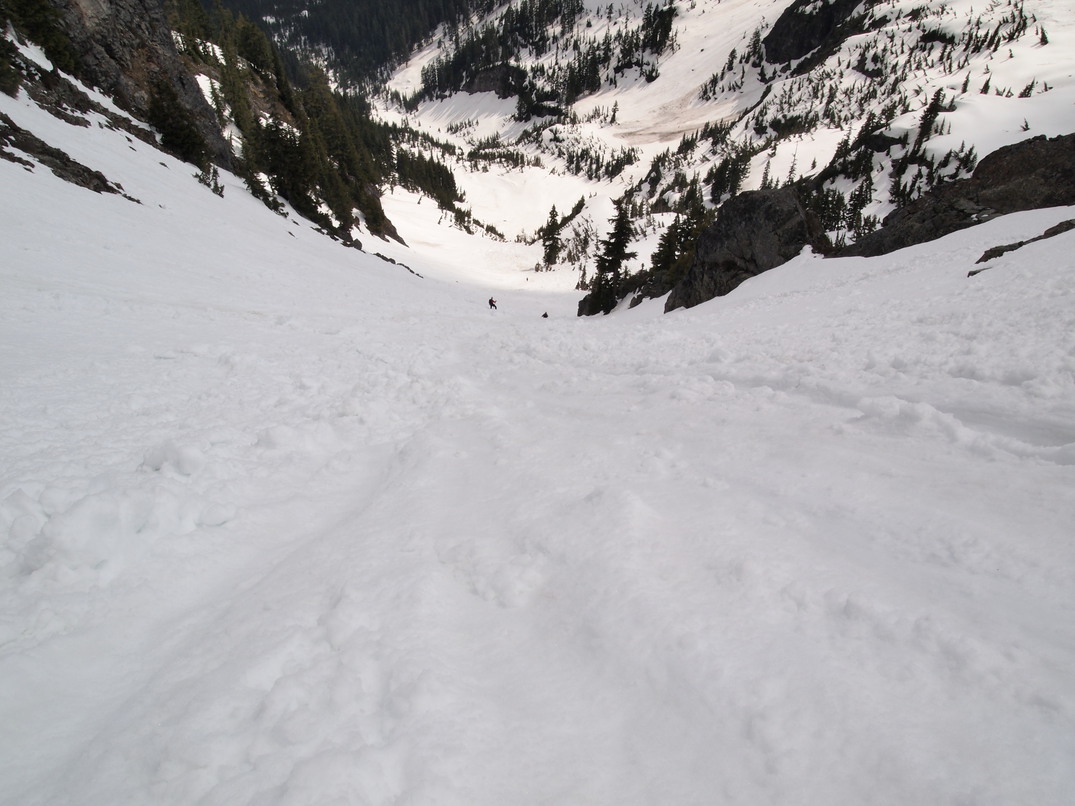 Looking down at the awesome 1,200' glissade into Commonwealth Basin. Ian and I decided to return with Ken and Monique and get a ride back to our car.