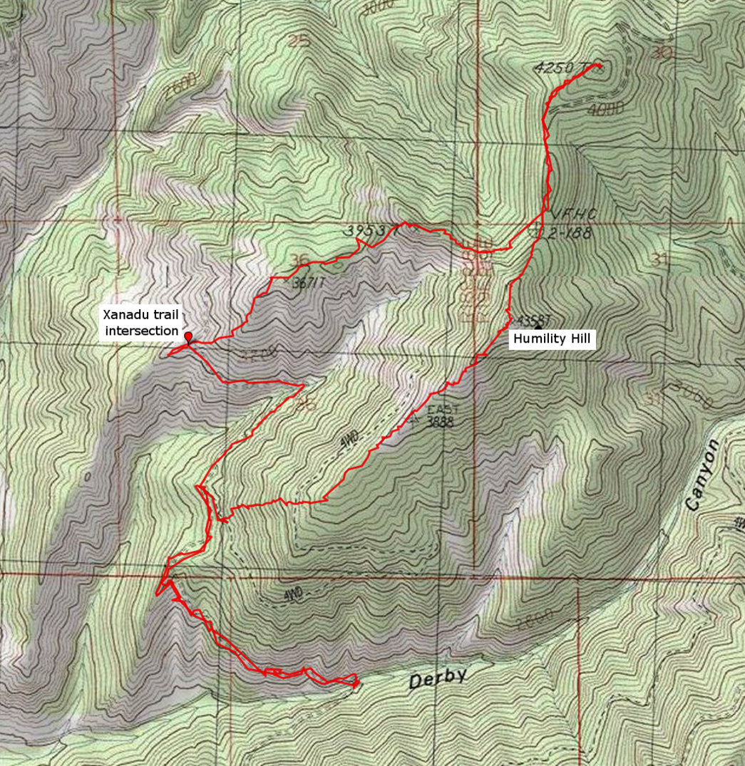 2 hours 3 minutes ascending from Derby Canyon Road to the summit of Humility Hill
