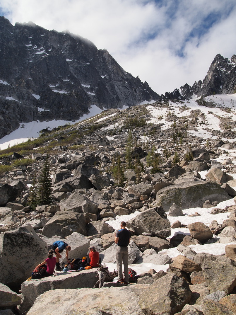 Taking a break on the SW side of Colchuck Lake before heading up the Colchuck Glacier