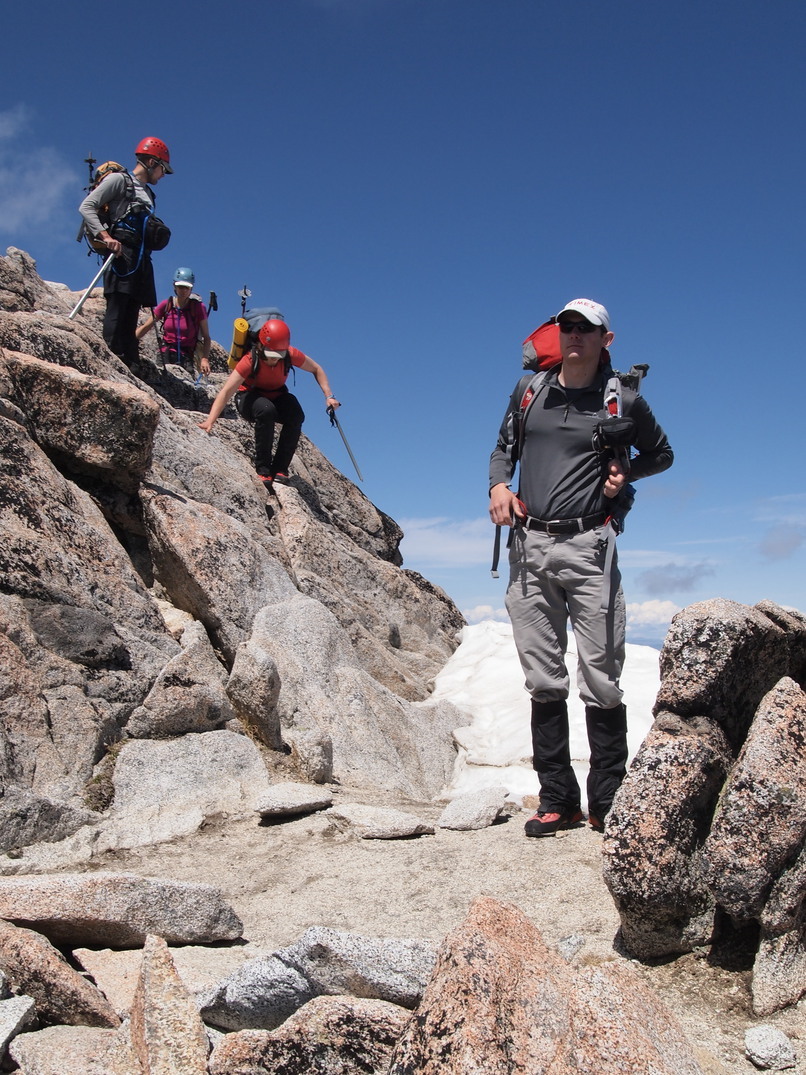 Brian on the summit of Little Annapurna, looking down at the Flagpole Needles.