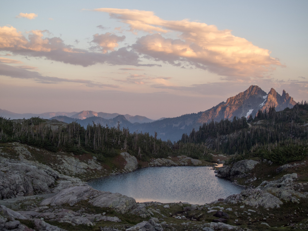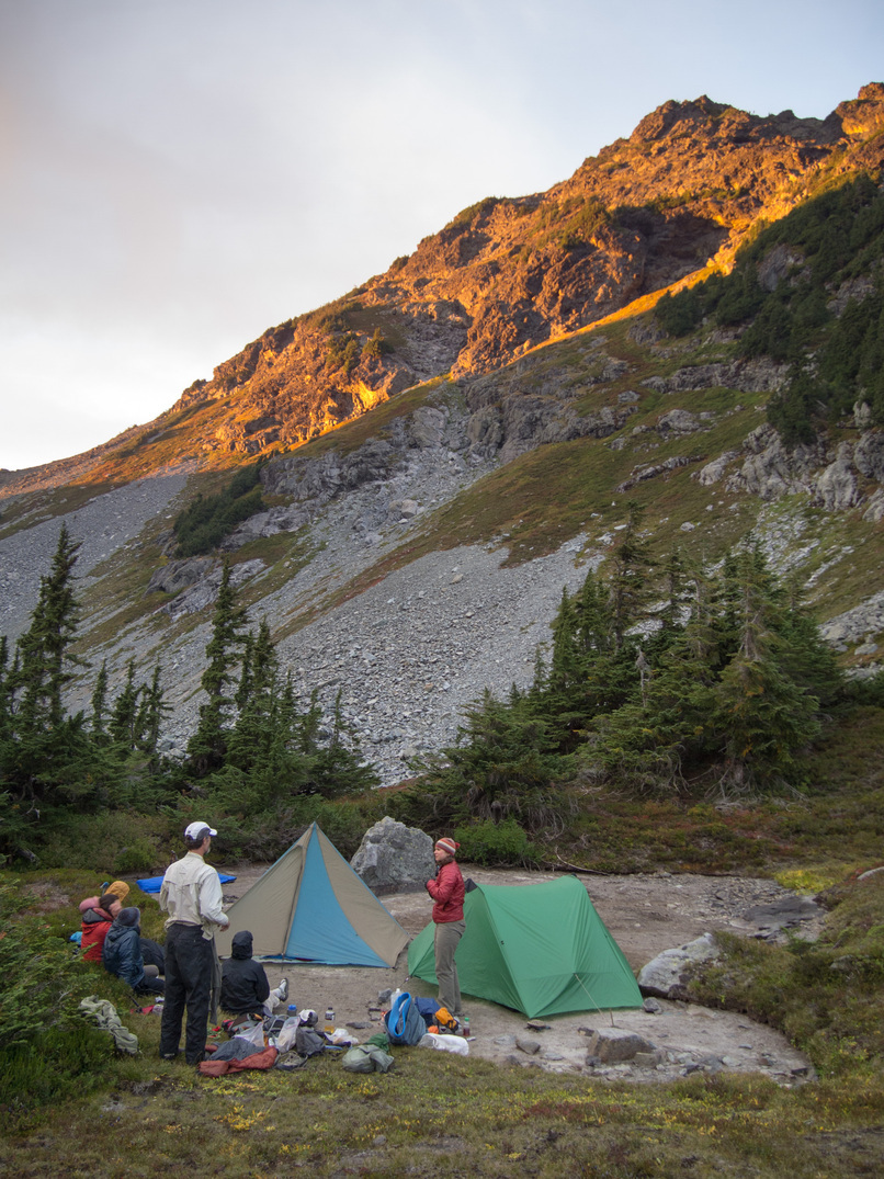 Sunset at our camp. Mike and Carrie arrived while we were out scrambling Burnt Boot and Iapia.