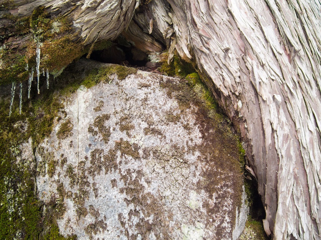Tree hugging a boulder.