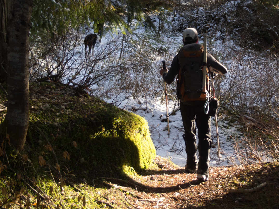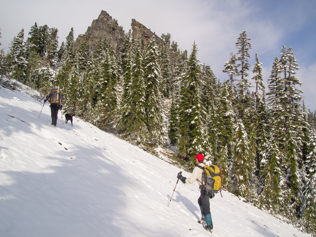 Ascending one of the many snow-covered slab we encountered on our way up.