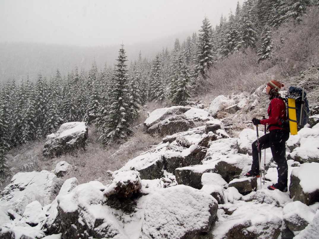 Lots of mossy boulders. A sign near the trail head explains how this area gets 2.5 times as much rain as Seattle.