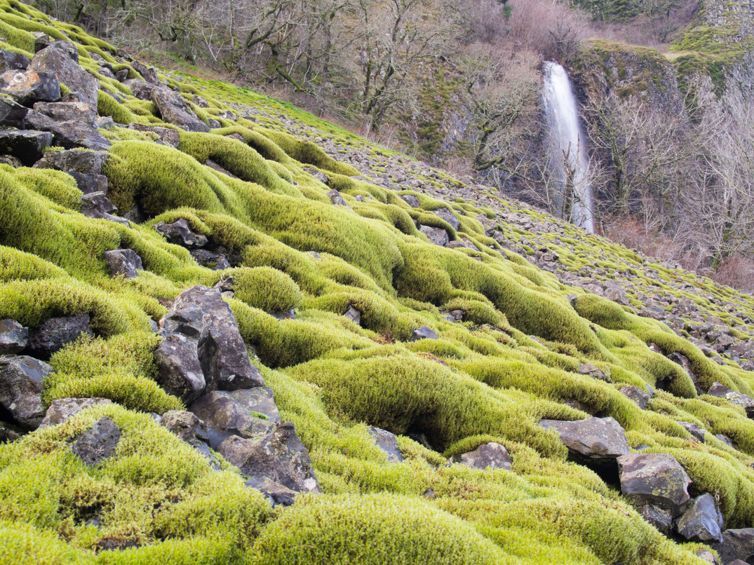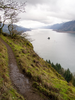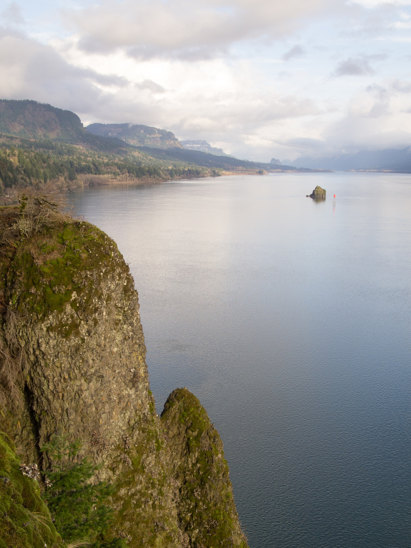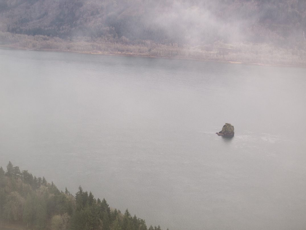 Looking up river with Phoca Rock in the distance. "Phoca Rock was named by Lewis and Clark, after the Latin (Greek?) word for "seal", as presumably they saw many seals in the area" - http://columbiariverimages.com/Regions/Places/phoca_rock.html