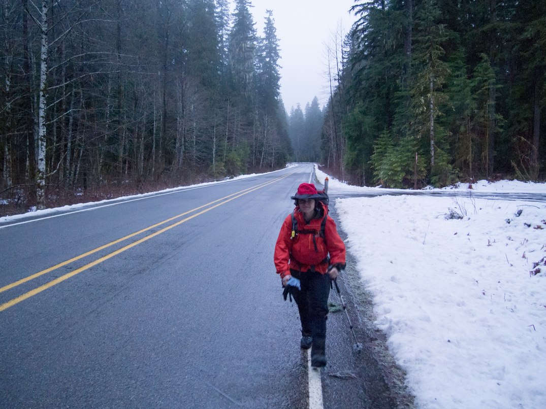 Road walking in the dark.