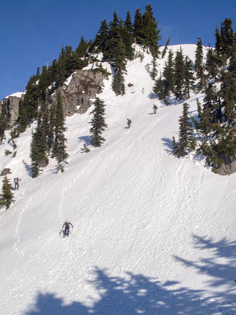 Descending from Copper Mountain. Half our party headed back to break camp and return to the cars at this point.