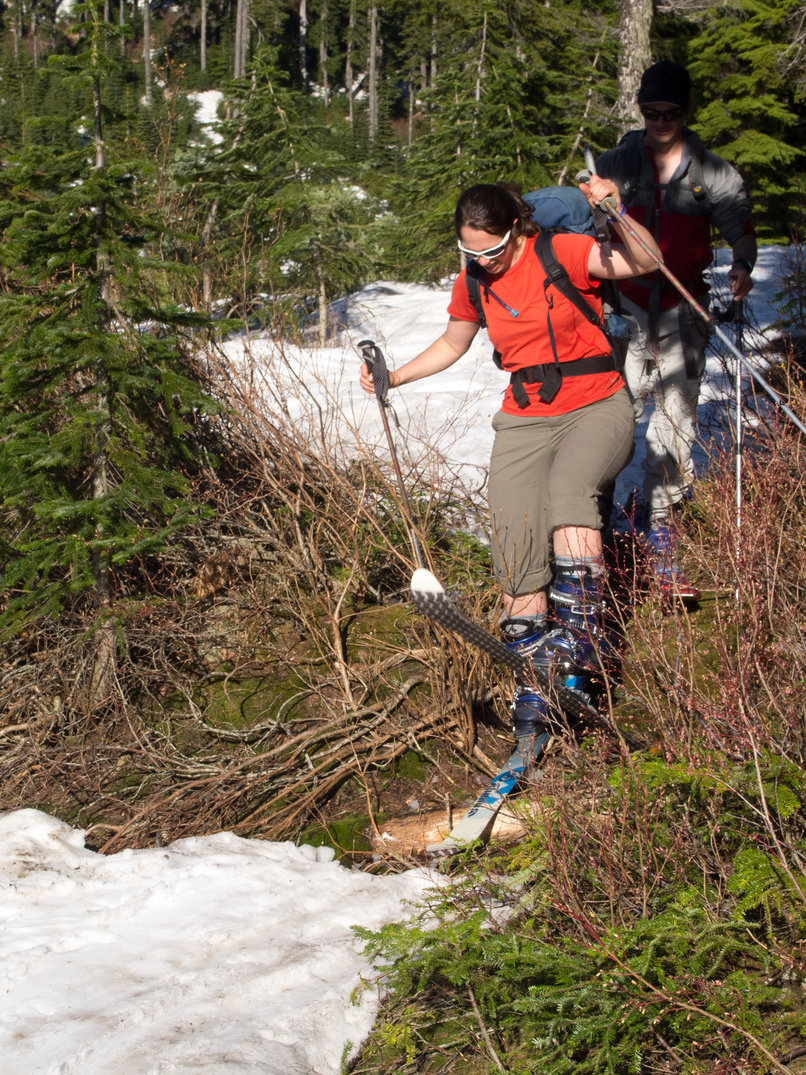Scrambling in ski boots!
