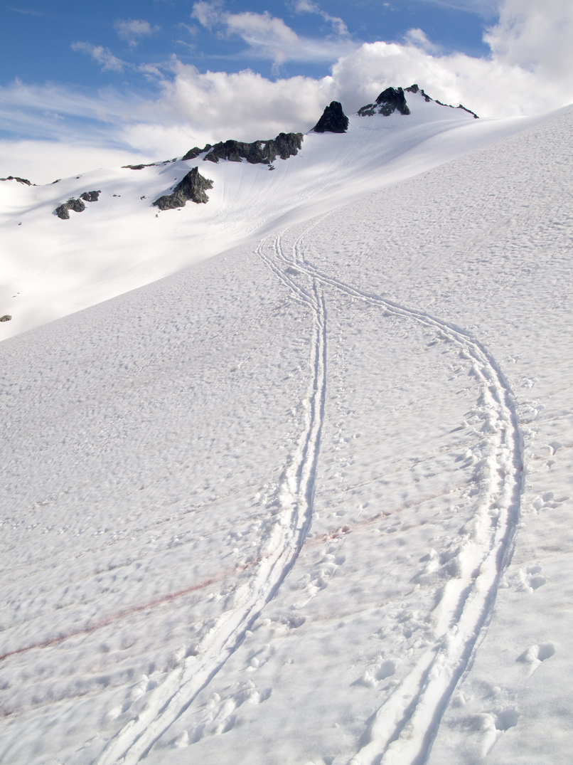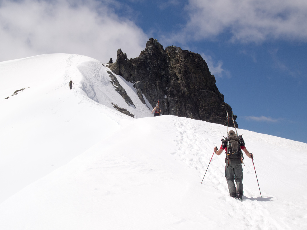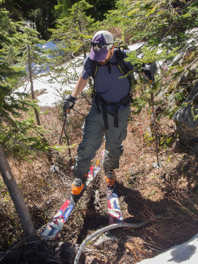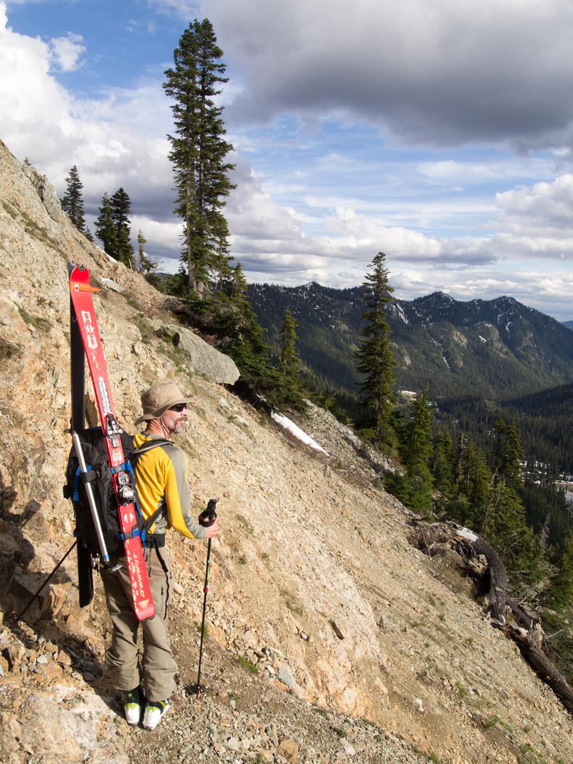 My hiking shoes were not where I had stashed them on my way up. I ended up hiking back to the trail head in my ski boots. On my way down I apprehended every day hiker I could and accused them of taking my shoes, but none of them fessed up.
