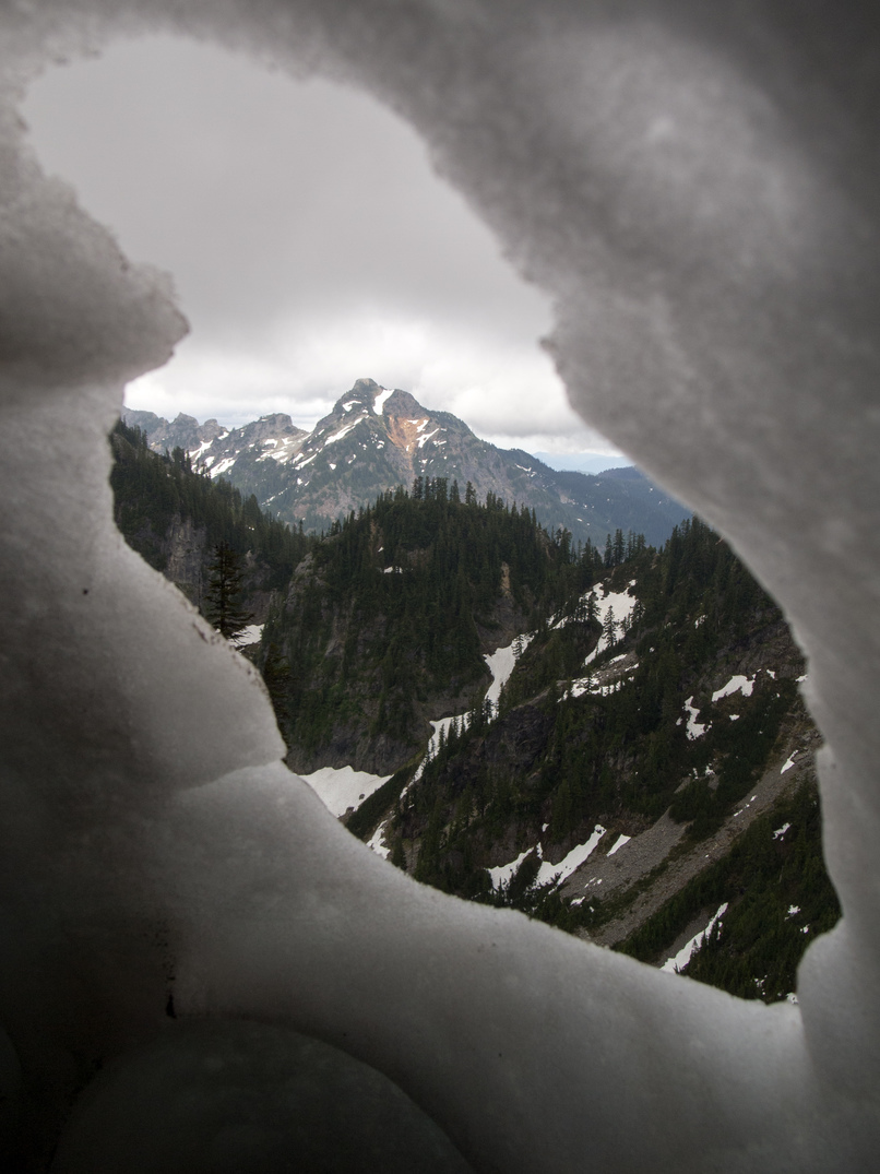 Alta Mountain from inside a snow cave.