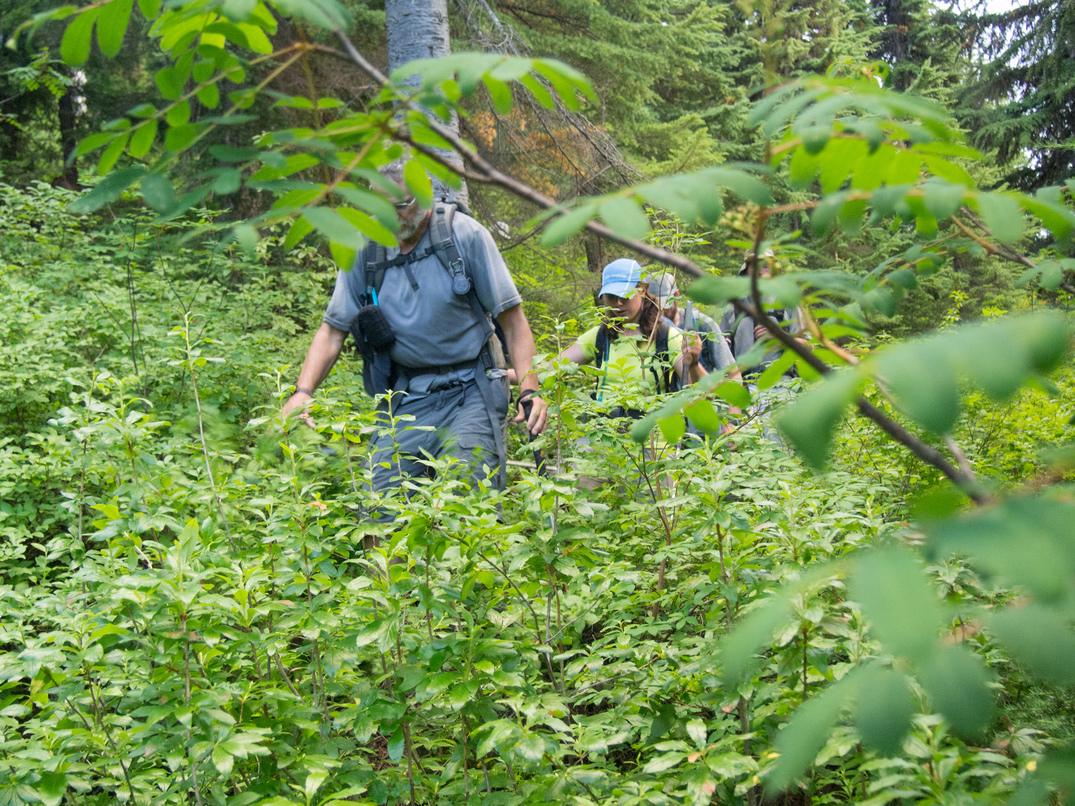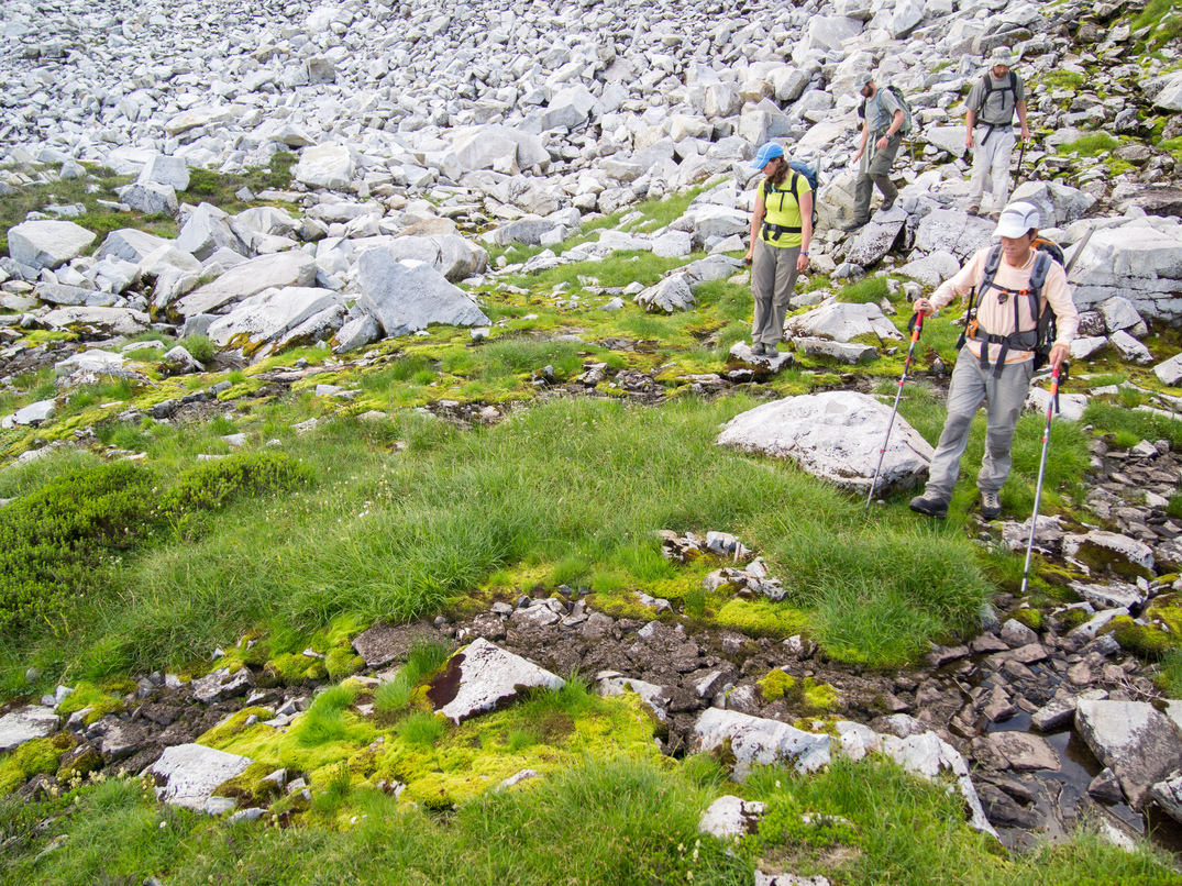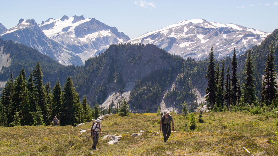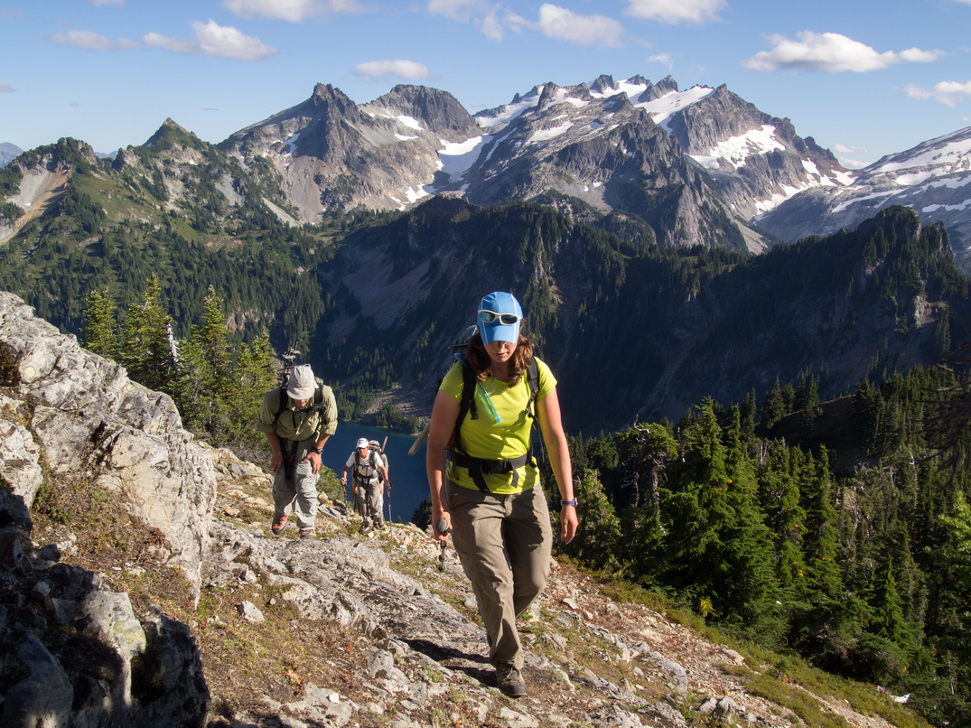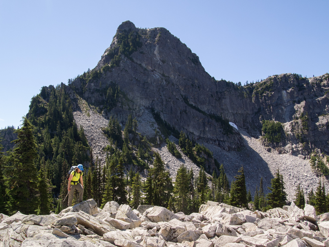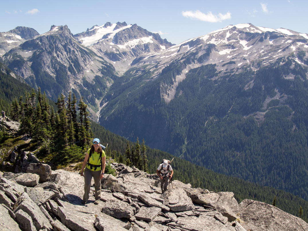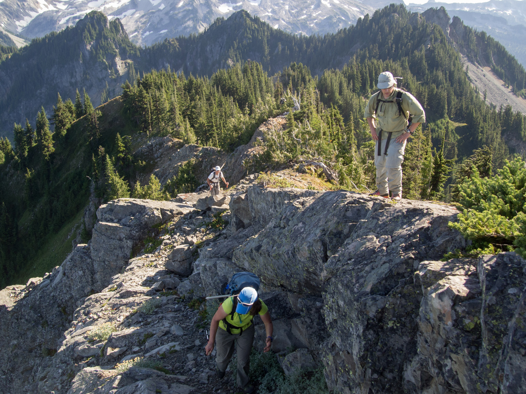 Scrambling up to the pass between Shroud Mountain and point 5961.