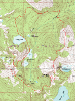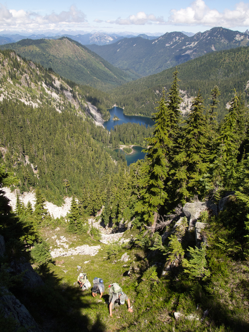 Looking down on Tonga Ridge and Fisher Lake from the summit of Jumar Mountain.