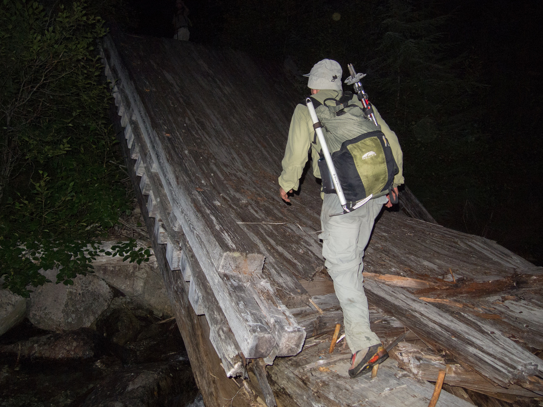 A broken, but useable bridge over Fisher Creek.