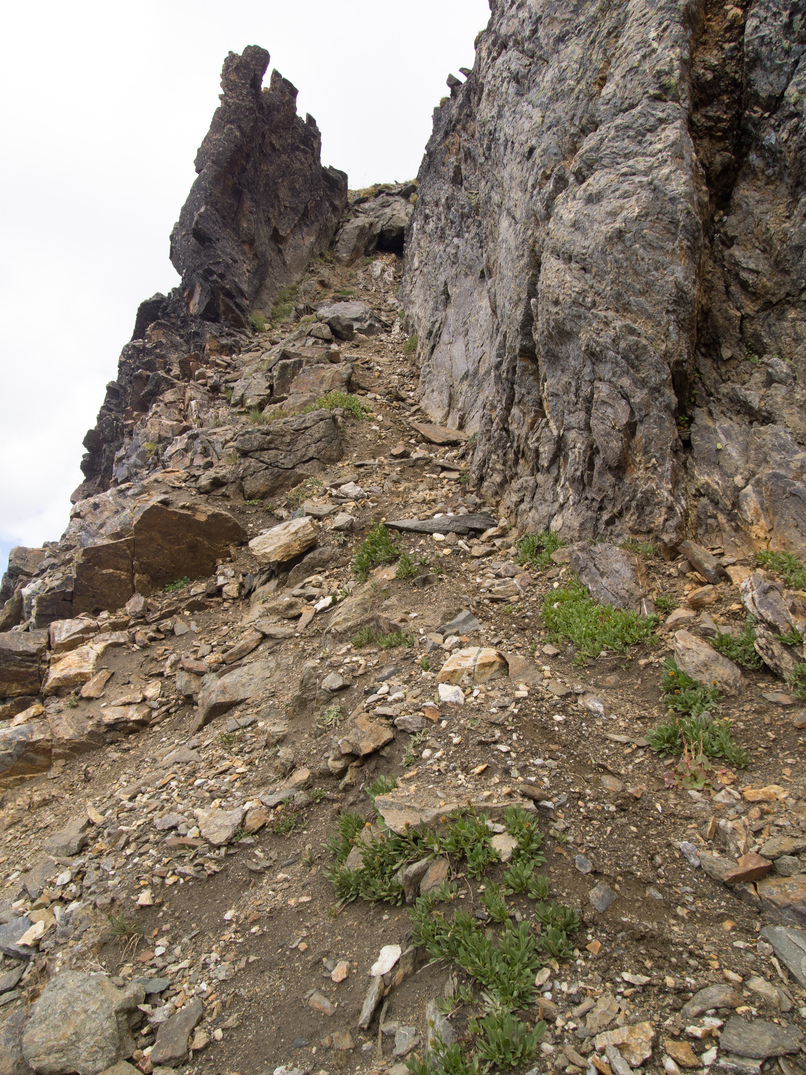 Ascending the gully at 7,200' that leads to Boulder Basin.