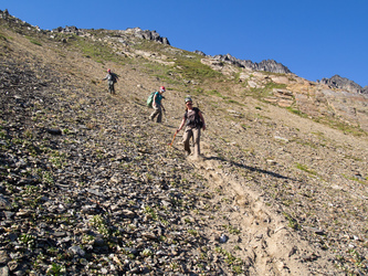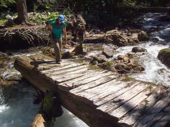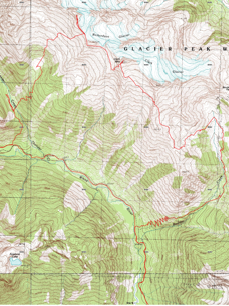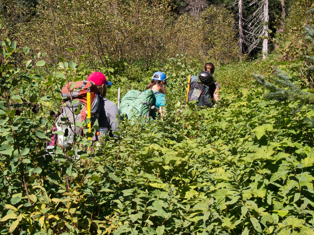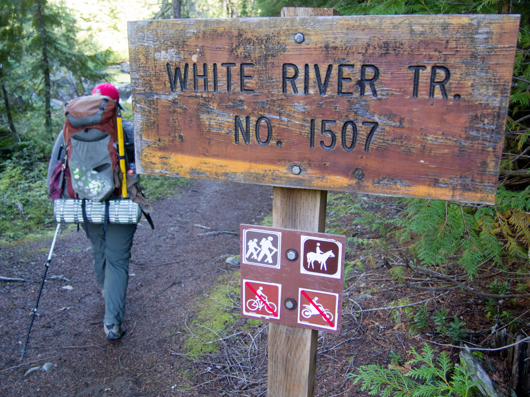 We missed the turn-off from the White River Trail to the Thunder Creek boot path on the first try. And we couldn't even find the fork from the Thunder Creek boot path onto the Luahna boot path, so we just headed up towards Luahna in the direction we though the boot path was.