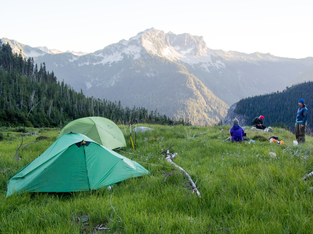 Our camp in the 5,000' basin. Mount Saul in the background.