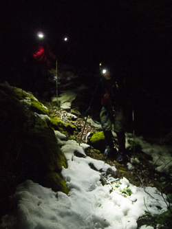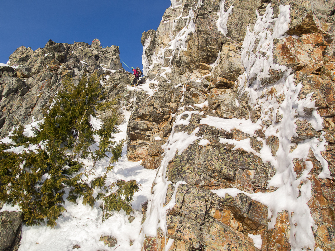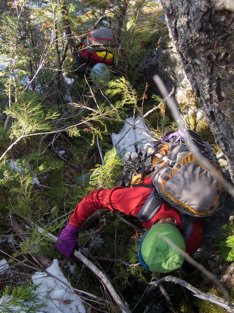 We used a handline to descend from the summit.