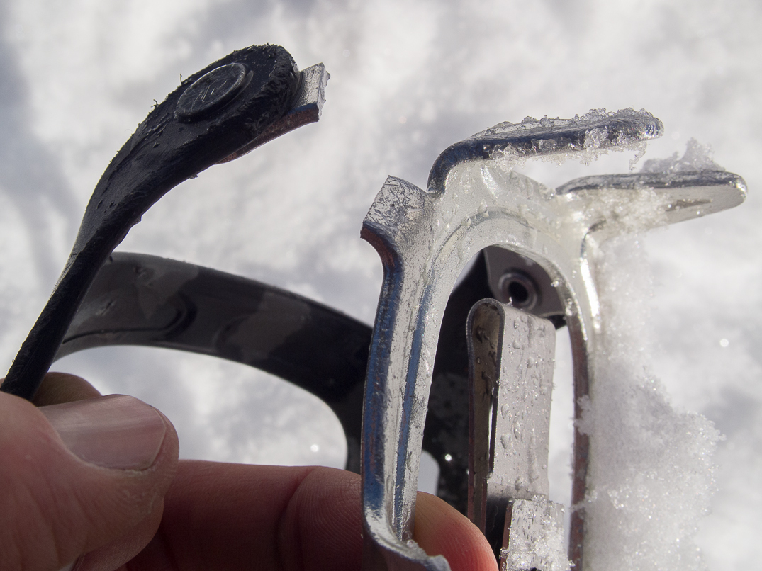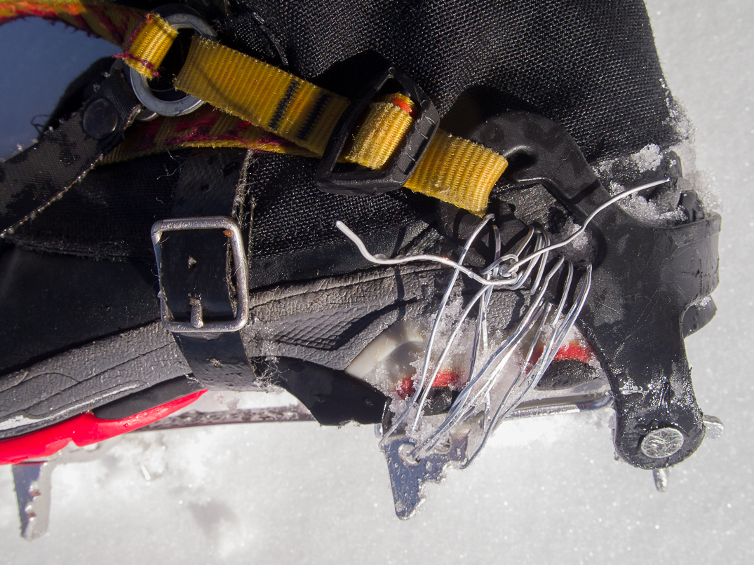 My crampons broke as I was punching steps through a very solid breakable crust.