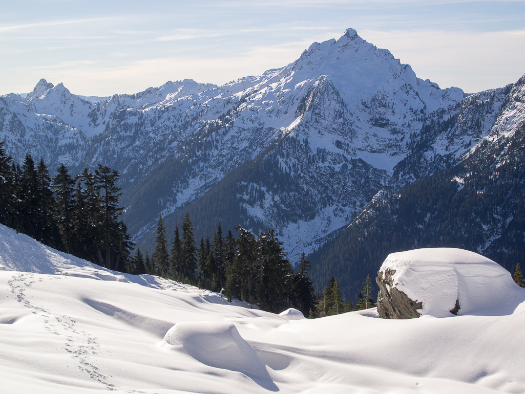 Big Four Mountain over Sheep Mountain's west buttress.