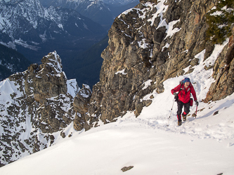 Ascending the final gully to the summit.