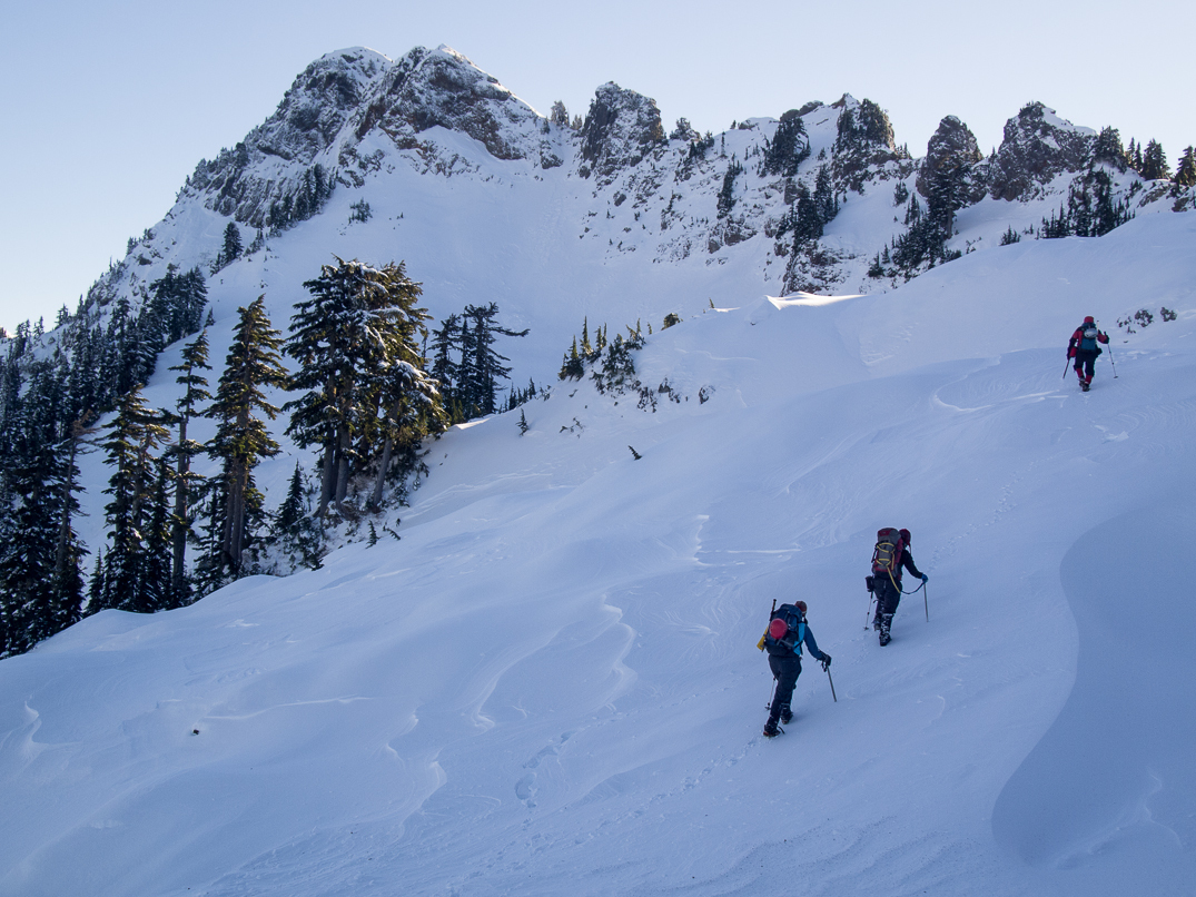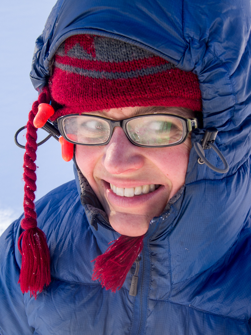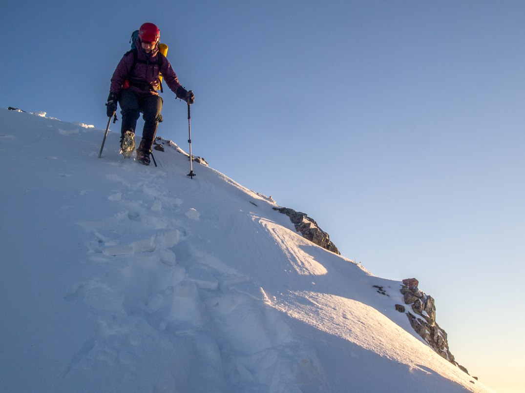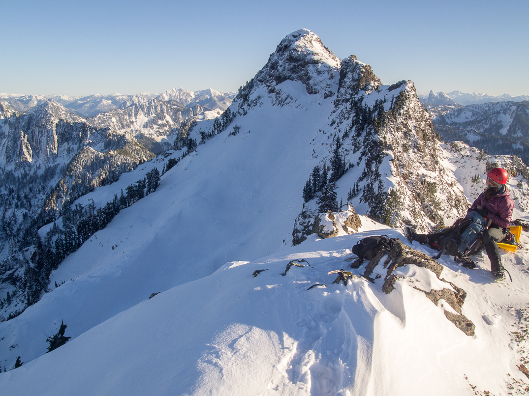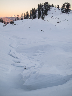 Cracks propagating through small patches of wind slabs persuaded me and Lindsay to turn around. Matt and Yana continued to the summit.
