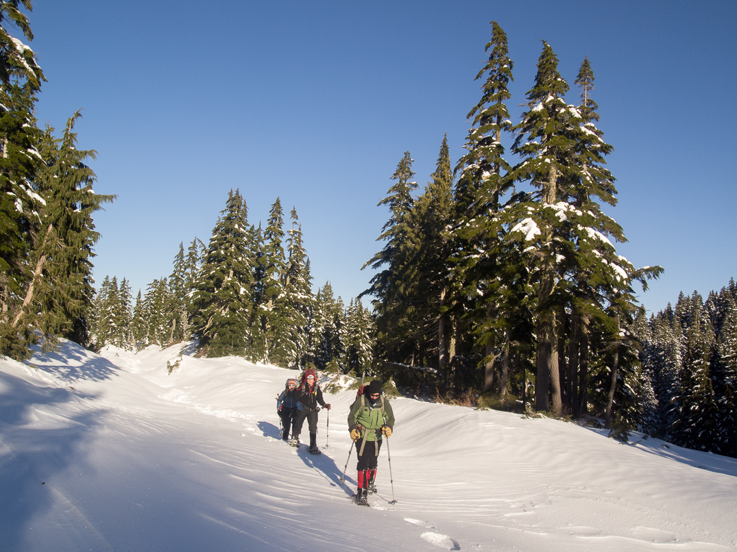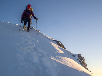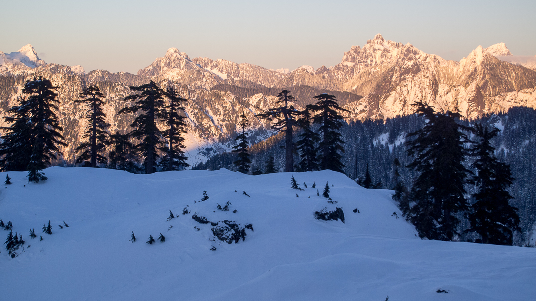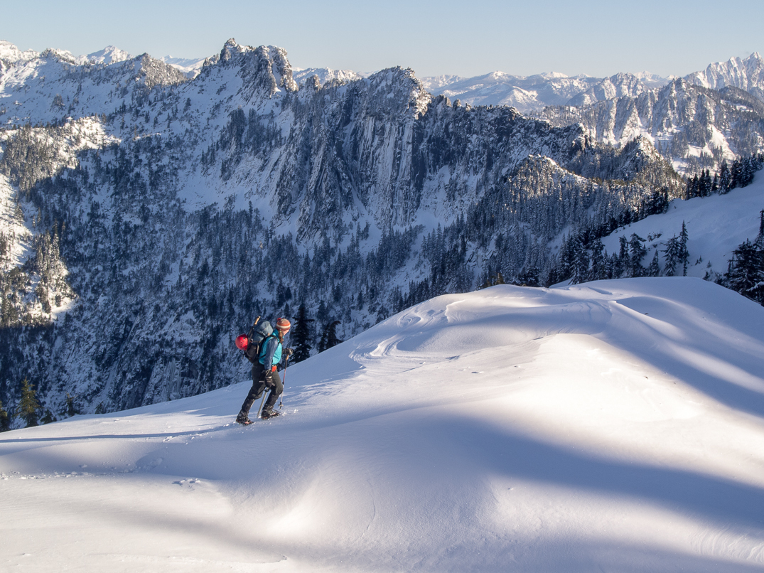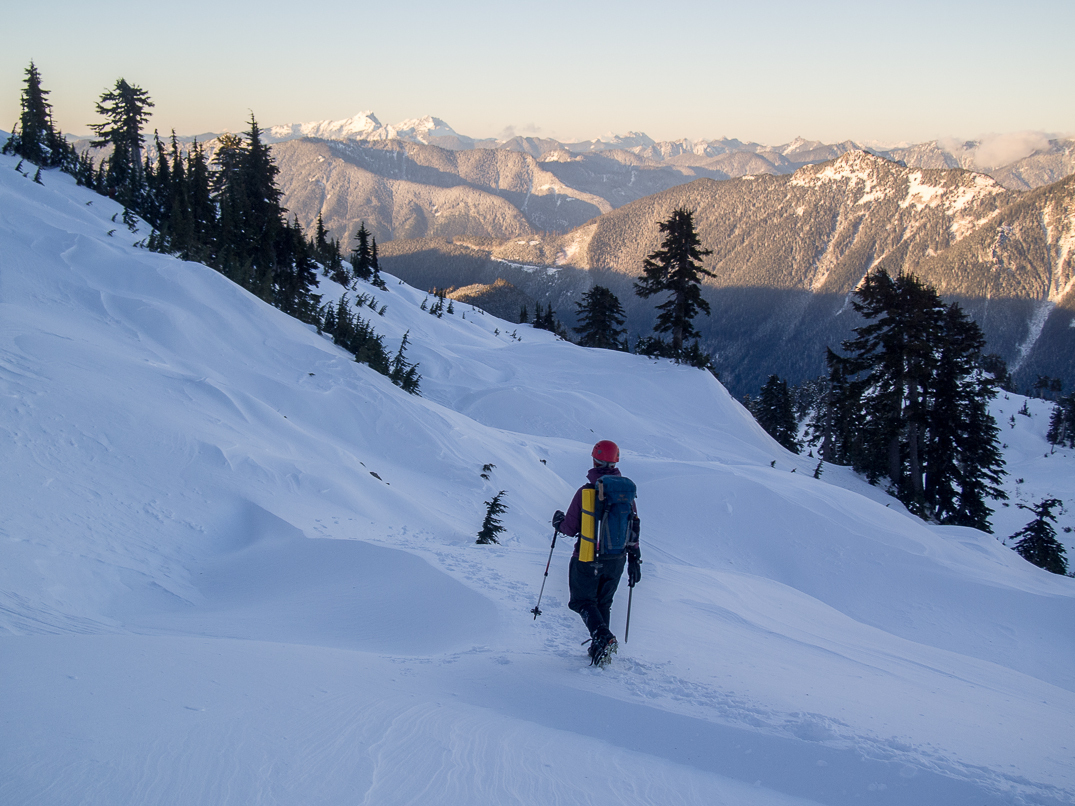 Cracks propagating through small patches of wind slabs persuaded me and Lindsay to turn around. Matt and Yana continued to the summit.