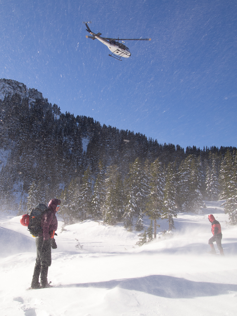 The SAR copter dropped off two rescuers. The temperatures were in the teens and the wind chill from the helicopter was tremendous.