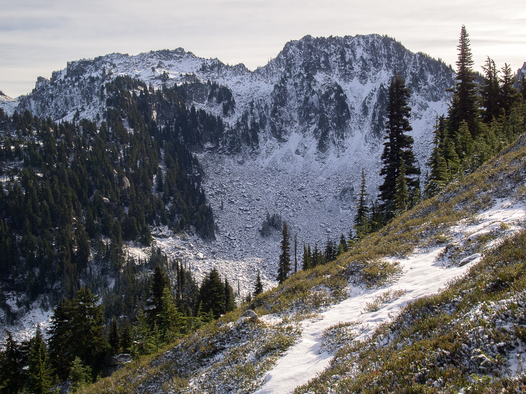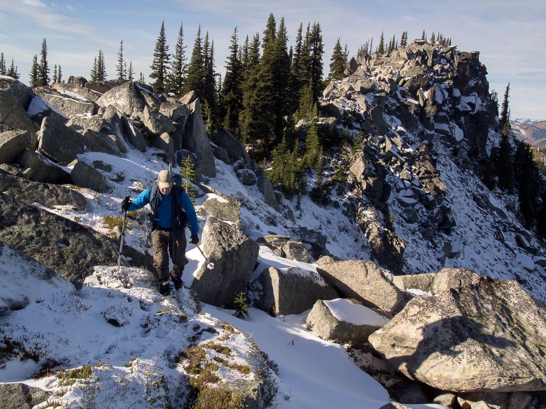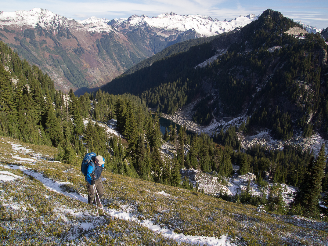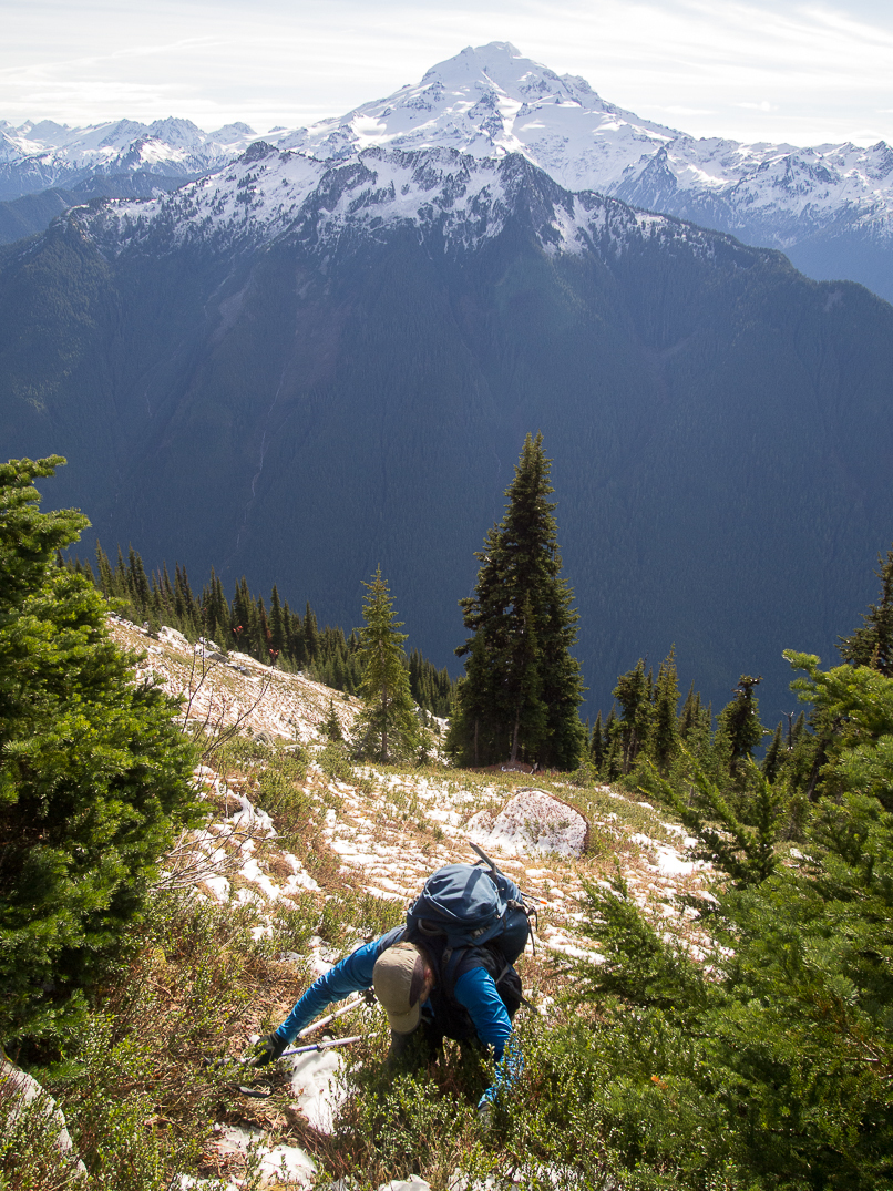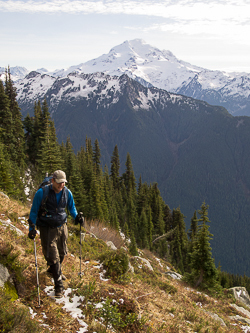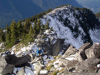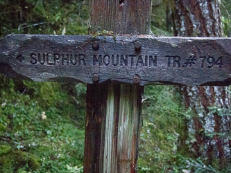 Matt and Carla's camp site at the old lookout site. Sulphur Mountain in the background.