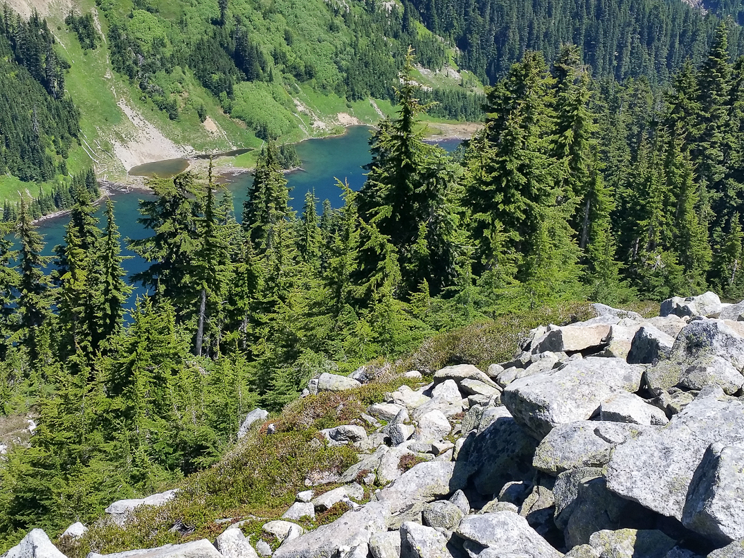 Looking down on the start of my cross-country descent from the PCT to Joe Lake.