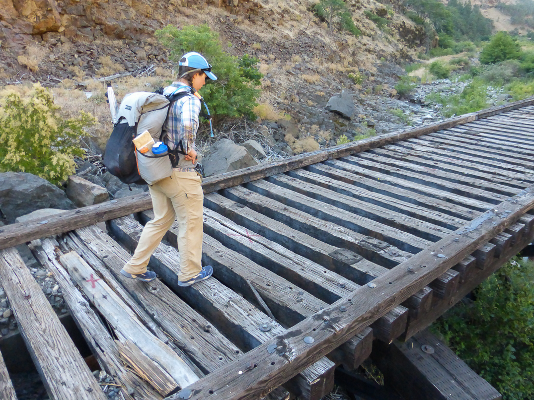 A railroad trestle on the rail trail through Swale Canyon.
