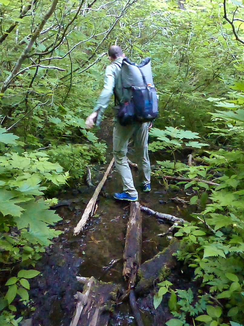 We unknowingly crossed Rock Creek at a decommissioned section of the Tarbell Trail. After a short bushwack on fading trail, we found the new, well-maintained trail.
