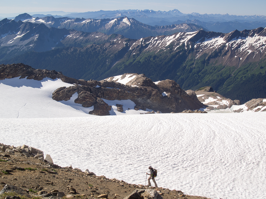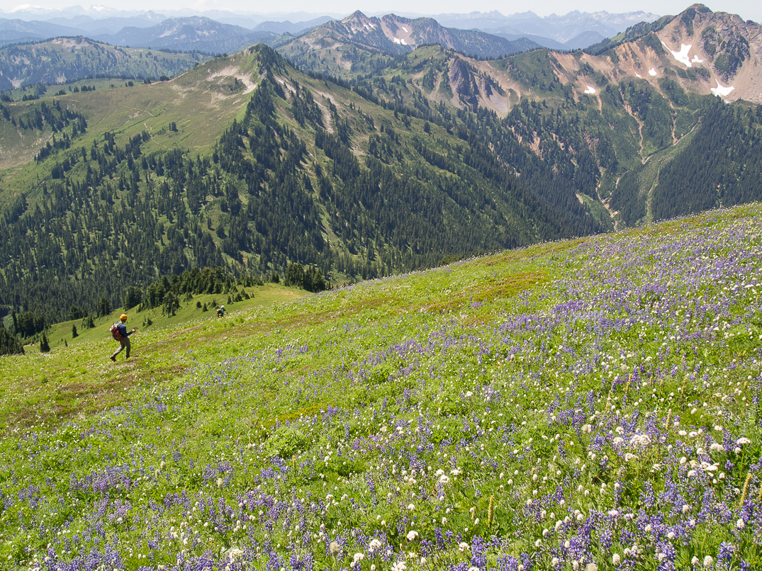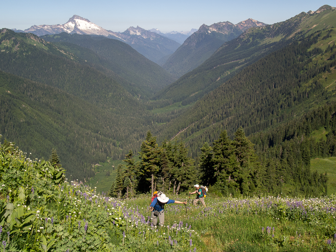 Descending to the PCT. The North Fork Sauk Valley in the distance.