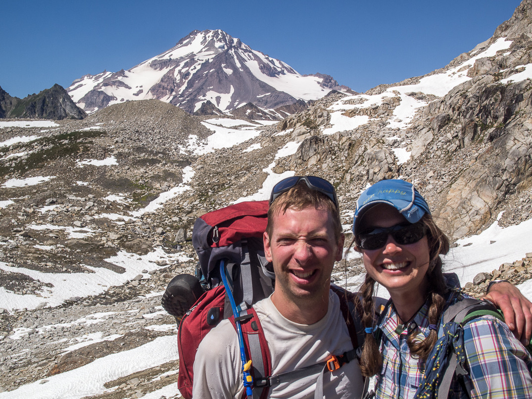 Glacier Peak and our campsite below the White Chuck Glacier.