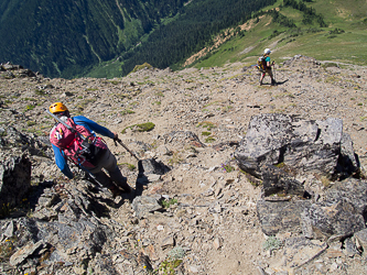 Descending Indian Head Peak's west ridge.